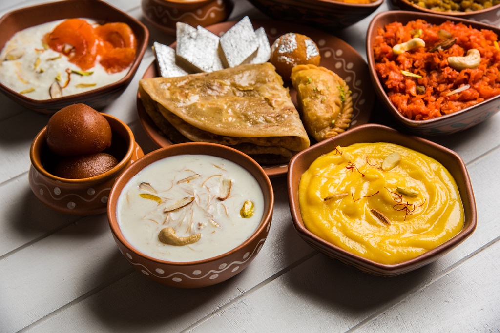 group of Indian Sweet / mithai in terracotta bowl