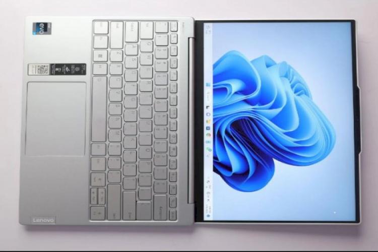 The laptop has a 14.0-inch QHD+ (1800×2880-pixel) anti-glare IPS panel with a 91% screen-to-body ratio, a 16:10 aspect ratio, a refresh rate of 90 Hz, 100% sRGB color gamut, a pixel density of 246ppi, 400 nits of brightness, and Dolby Vision.