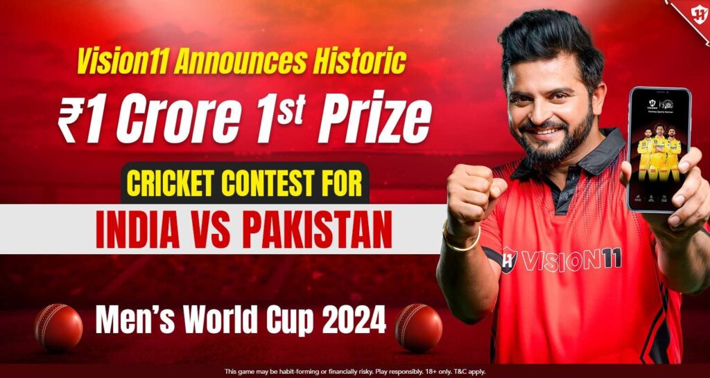 Vision11’s mega contest is open for registration, and with the Men’s World Cup 2024, featuring the iconic India vs Pakistan showdown, on the horizon, it promises to be a game-changer for fantasy cricket fans. Join now, craft your dream team, and stand a chance to win ₹1 Crore, along with other exciting prizes!